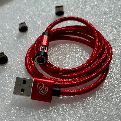 [BULK] 260 x USB Charging Data Cable 540° Rotation - 3.3ft Red with 3 magnetic tips