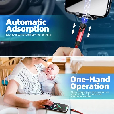 - 540°Rotation Design - The upgrade magnetic charging cable allows magnet tip to rotate 360° and charging head to bend 180°, this convenient design allow you to find the right angle for every charging occasion. Precisely completes the magnetic connection, which improves charging efficiency, Give you a different charging experience.