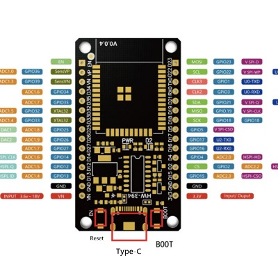 USB Interface: Type-C port with CH340C USB-to-serial converter for programming.